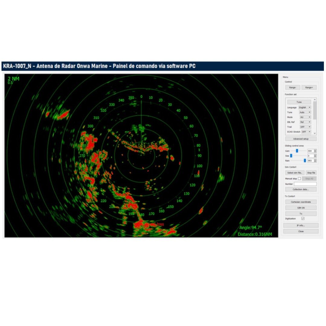 Antena de Radar Marítimo para controle através de software, sem a necessidade de adquirir um display de radar dedicado.