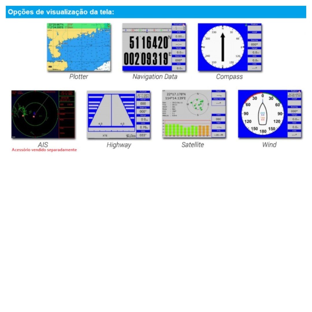 Transmite e recebe informações AIS (necessário antena VHF/AIS vendida separadamente).