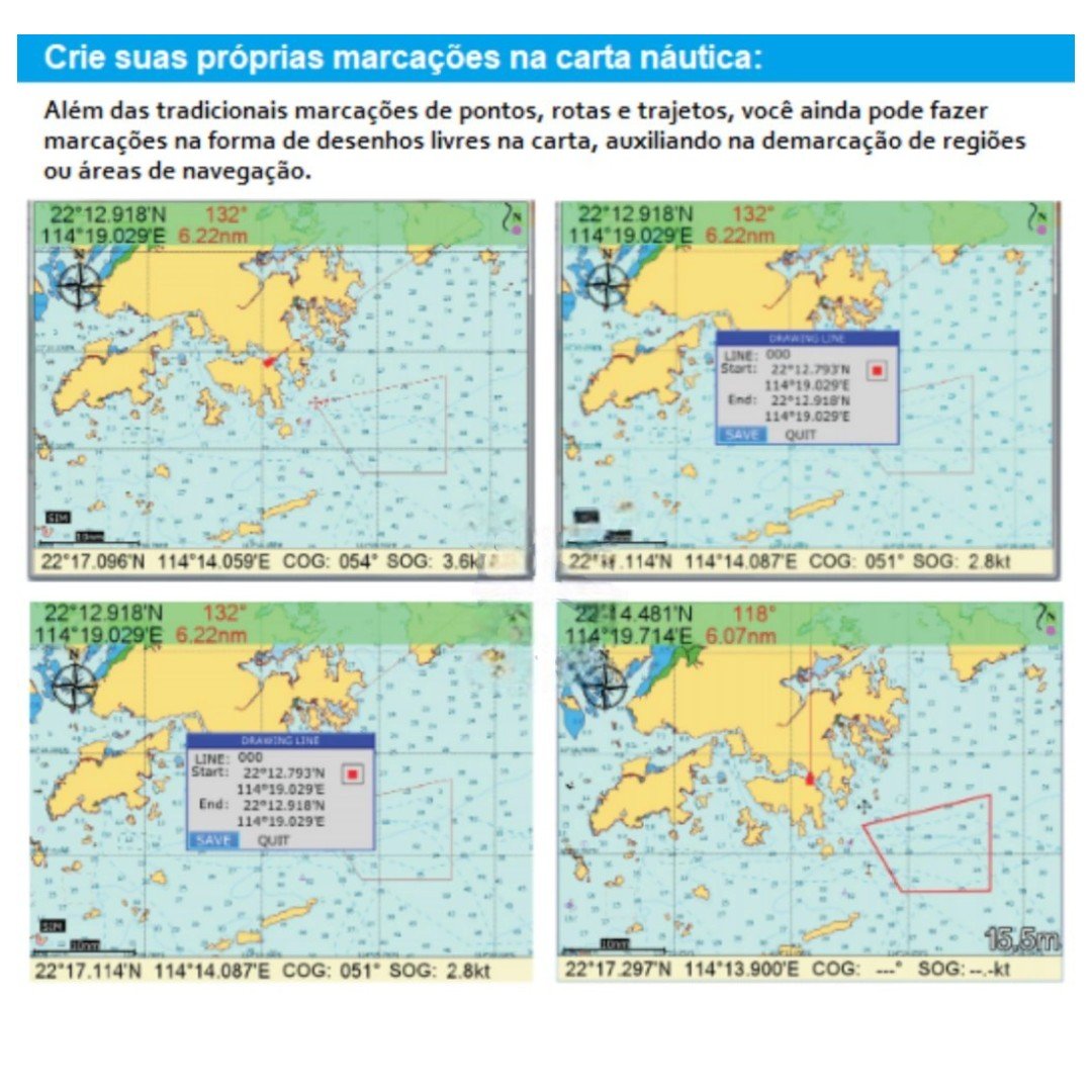 Carta náutica Kchart Onwa Marine com cobertura da América do Sul pré instalada na memória – Consulte outras cartografias.