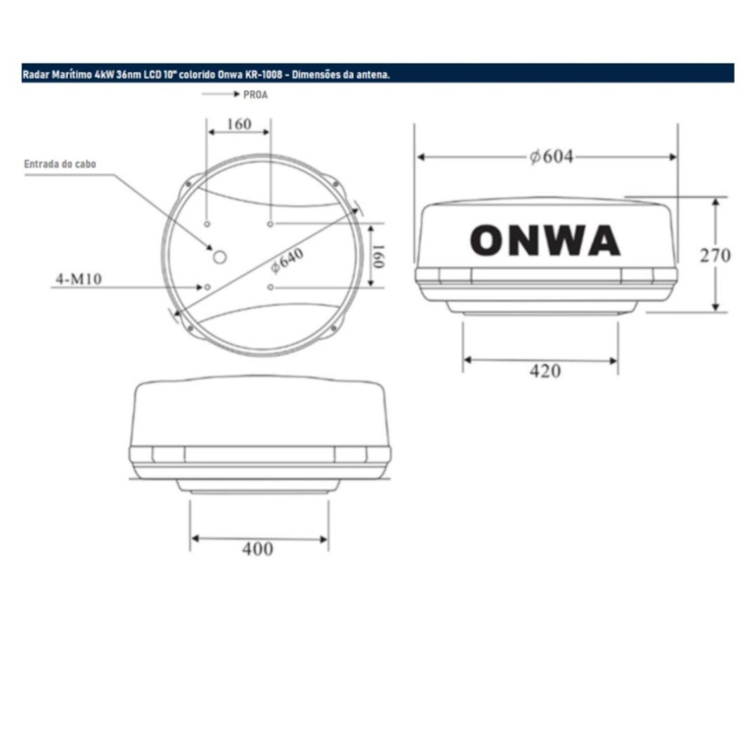 KR-1008 Radar Marítimo Onwa Marine 4kW 36nm