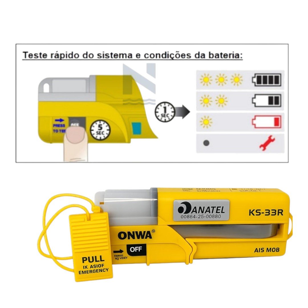 Além do sinal AIS o equipamento ainda emite um sinal de luz forte e brilhante e sinal sonoro estridente, facilitando a localização.
