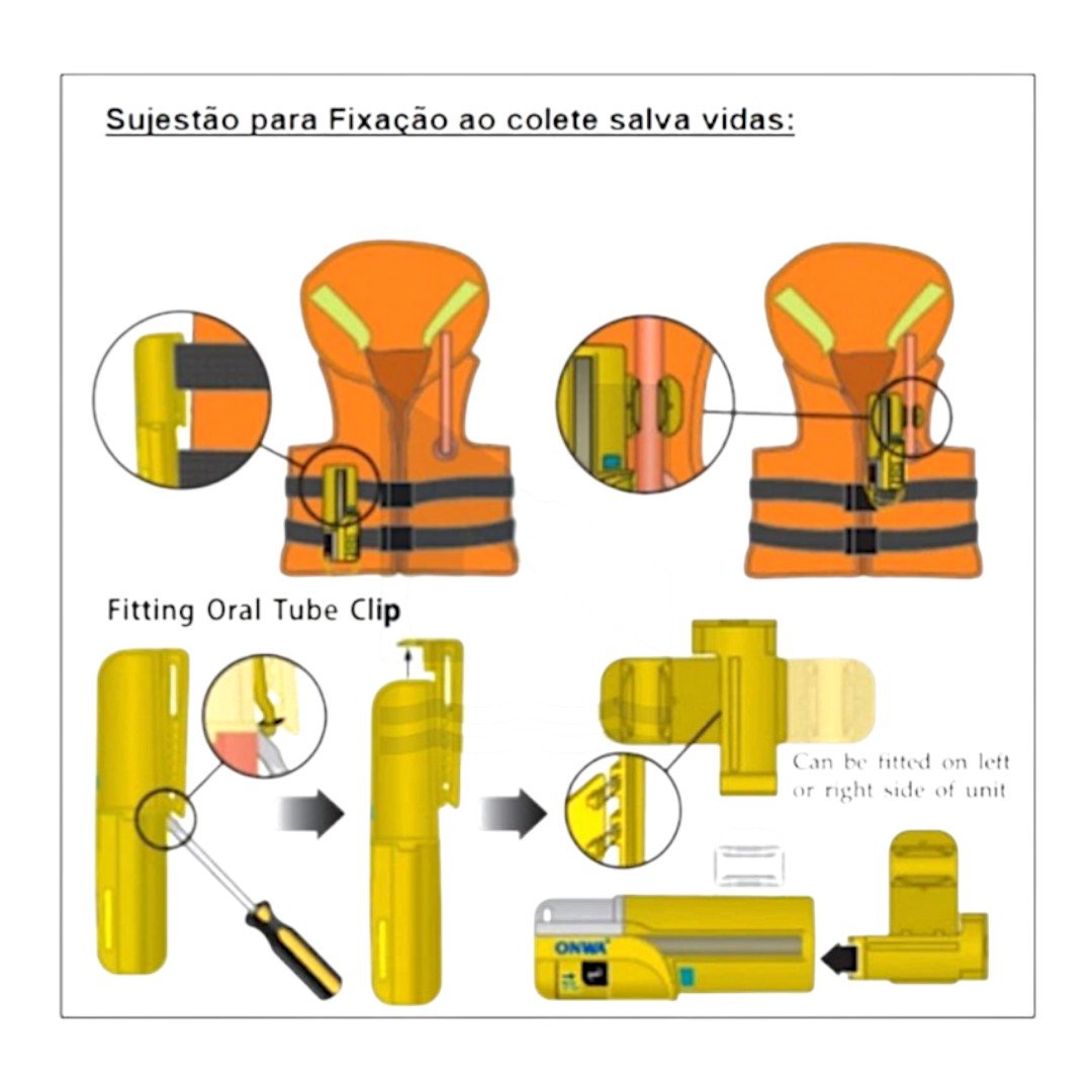 Leve e compacto, ideal para fixação junto ao colete salva-vidas.