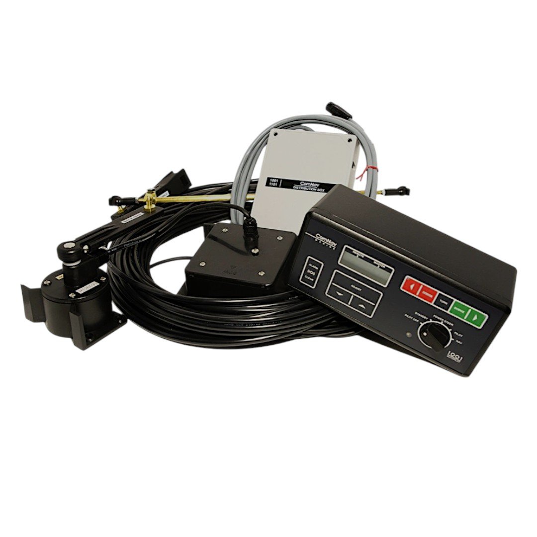 ComNav 1001 AutoPilot é um Piloto automático de estação fixa completo, incluso cabeça de comando, sensor de ângulo de leme (rudder feedback), bússola eletrônica fluxgate e unidade de processamento.
