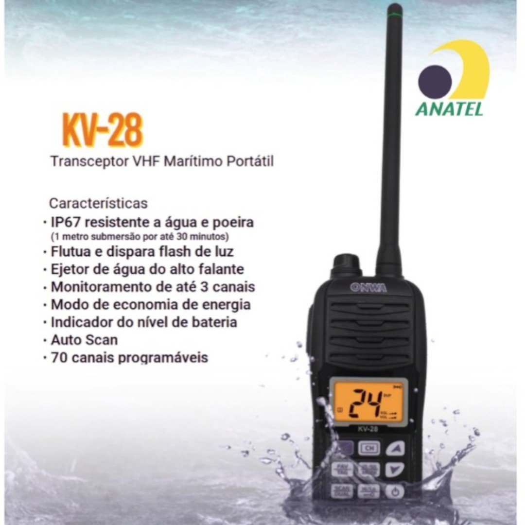 Rádio VHF marítimo portátil a prova d’água Onwa Kv-28 homologado
